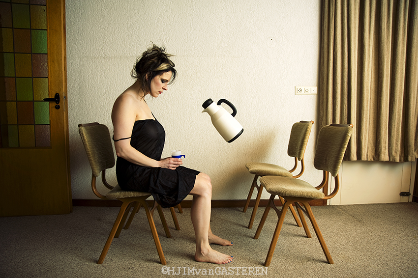 De fotografische taferelen van Henriëtte van Gasteren doen tegelijk heel vertrouwd én heel ongemakkelijk aan. Vertrouwd, omdat de achtergrond vrijwel steeds een heel herkenbaar alledaags interieur is. Henriëtte fotografeert zichzelf in haar eigen huis, in haar ouderlijk huis, in huizen van vrienden en vreemden, in hotels. Het zou bij mij of bij u kunnen zijn. Meestal staat zij zelf centraal en creëert zij met enkele elementen een tafereel dat je aan het denken zet. Haar werk draait om de zoektocht naar identiteit en zelfexpressie, waarbij ze thema’s zoals genderrollen, vrijheid en de menselijke ervaring verkent. Door zelfportretten te combineren met verschillende kunstvormen, creëert ze een krachtige dialoog tussen gedachten en universele emoties.